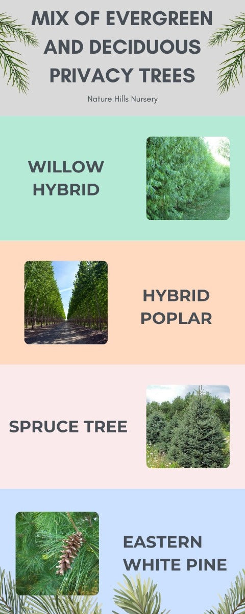 Mix of Evergreen and Deciduous Privacy Trees